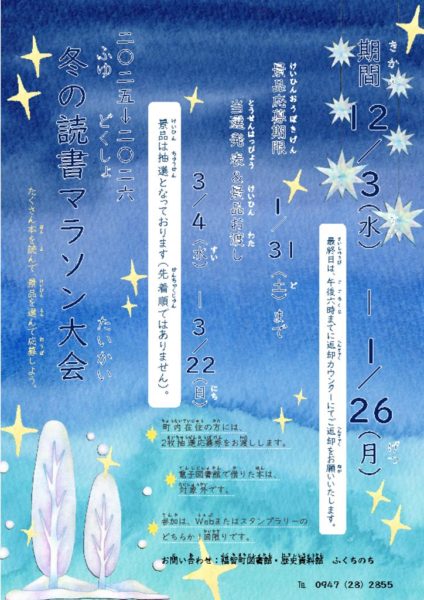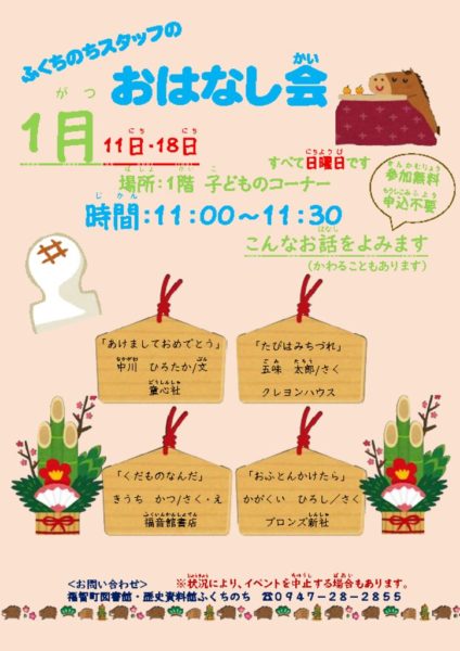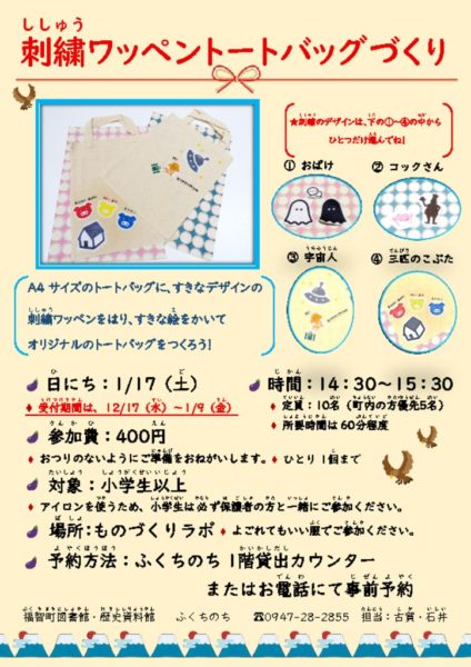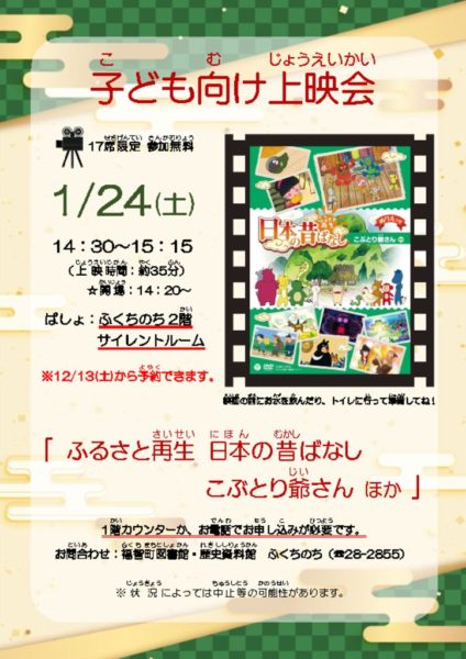 お申し込みが必要です。ご予約は、12/17(水)から1/9(金)まで。ふくちのちカウンターまたはお電話(0947-28-2855)にて受け付けいたします。