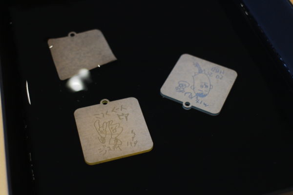 紙に描いた絵をレーザーカッターで彫刻しました