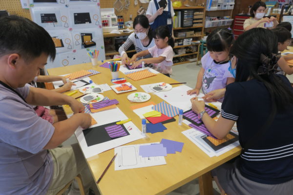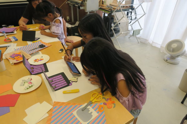 黒い紙に、模様がはいった紙を貼っていきます。