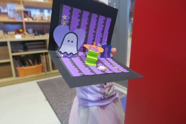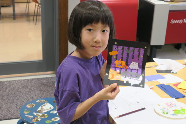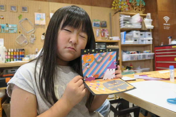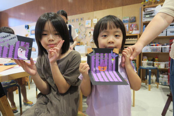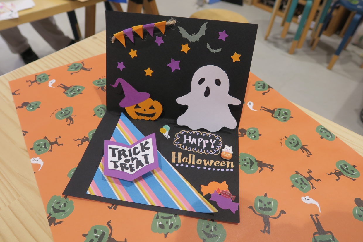 夏の暑さがまだまだ続くなか、10月のハロウィンに向けてポップアップカードをつくりました。