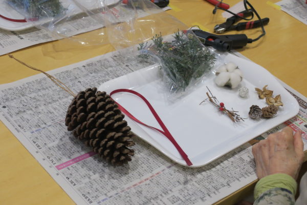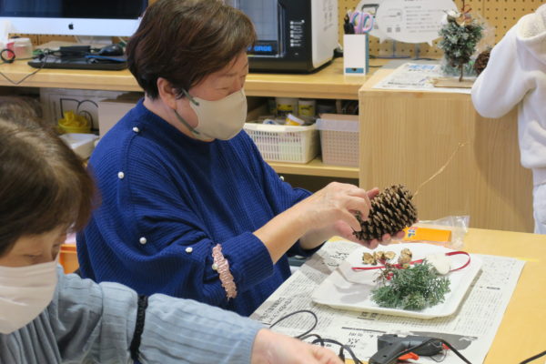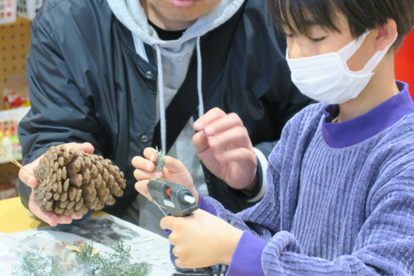 12/13(土)に、クラモト花店さんによるワークショップ「おおきな松ぼっくりのクリスマス飾り」を行いました。