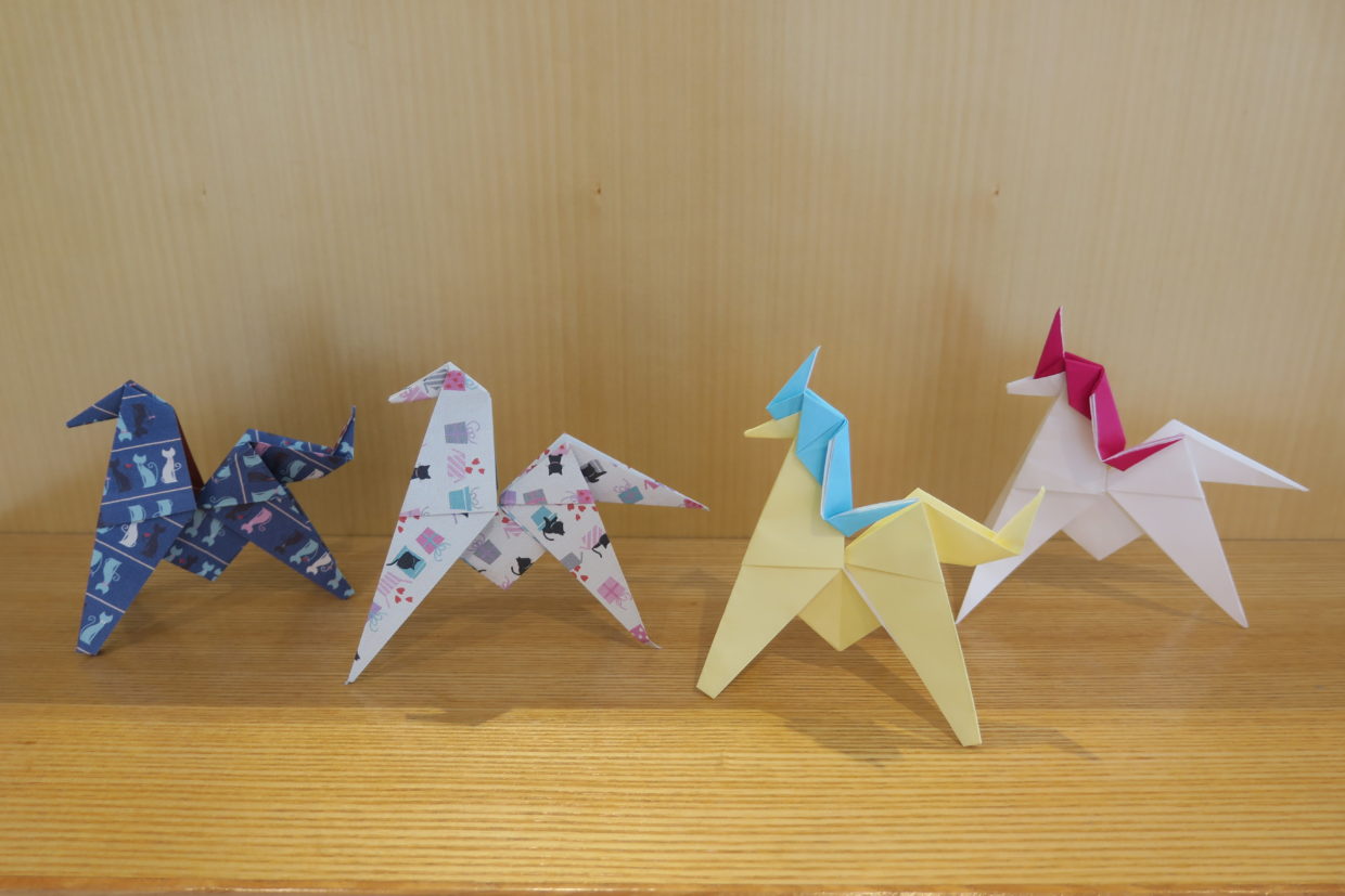折りにくい白い折り紙にも挑戦!白馬が出来上がっていきます。