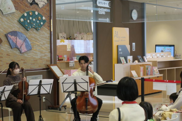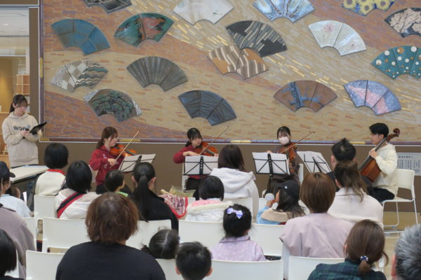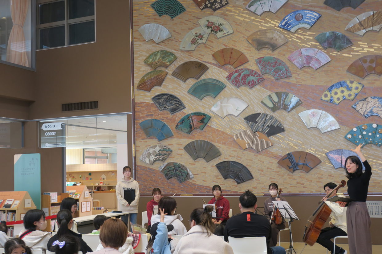 演奏会の合間には、弦楽四重奏で使われる楽器の紹介もあり、子どもたちは興味深そうに耳を傾けていました。