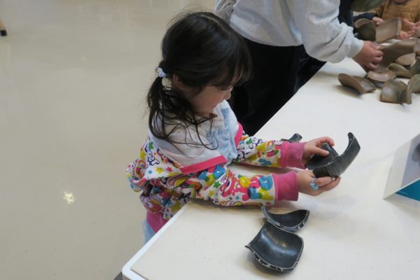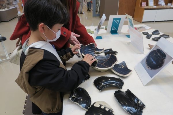 待ち時間が出るほどの人気で、子どもたちだけでなく大人の方も夢中になっていました。中には五種類の土器パズル全てに挑戦する子、時間をおいて何度も挑戦する子も。