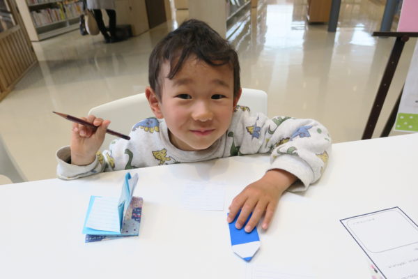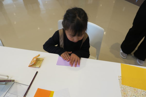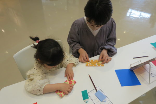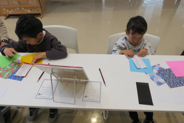 今月の折り紙教室は、入学式や新学期の時期にちなんで『えんぴつ&ノート』を折りました。